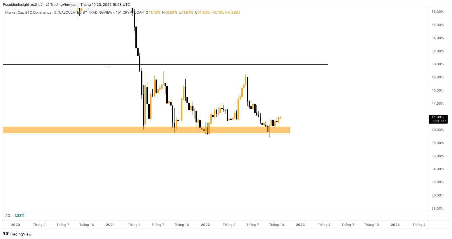 Trong tuần trước, chúng ta đã chờ đợi một cú “shake-out” của BTC.D, tuy nhiên điều này đã không xảy ra. Hiện tại, BTC.D không có quá nhiều điều để nói.