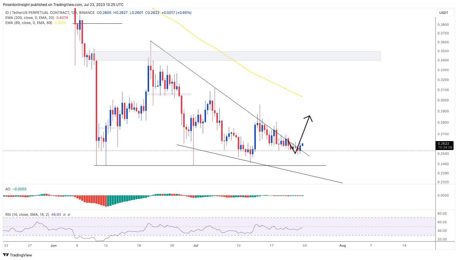 Đồ thị 1D của cặp ID/USDT trên sàn Binance Futures, ảnh chụp màn hình TradingView vào tối ngày 23/07/2023
