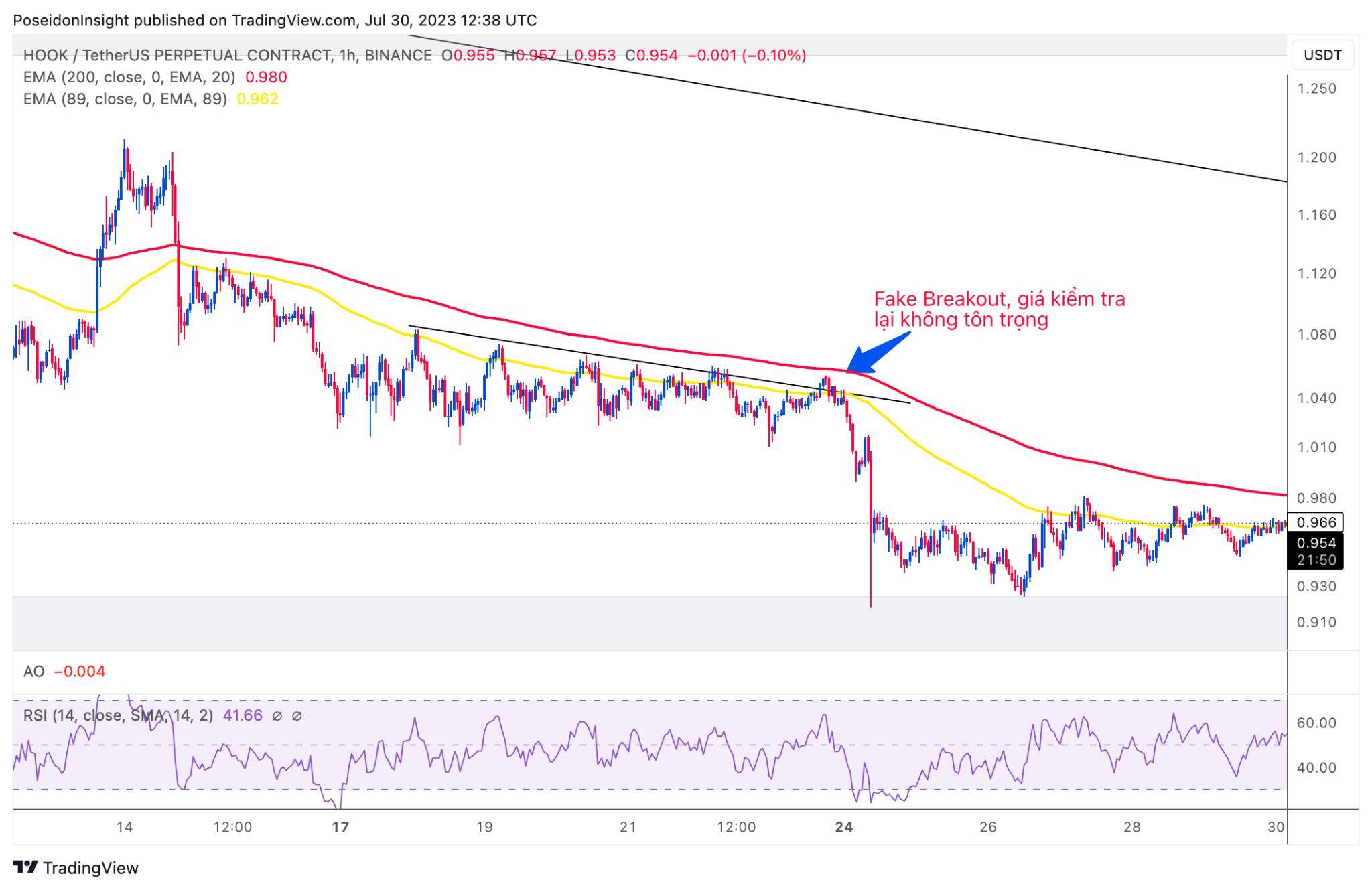 Đồ thị 1h của cặp HOOK/USDT trên sàn Binance Futures, ảnh chụp màn hình TradingView vào tối ngày 30/07/2023