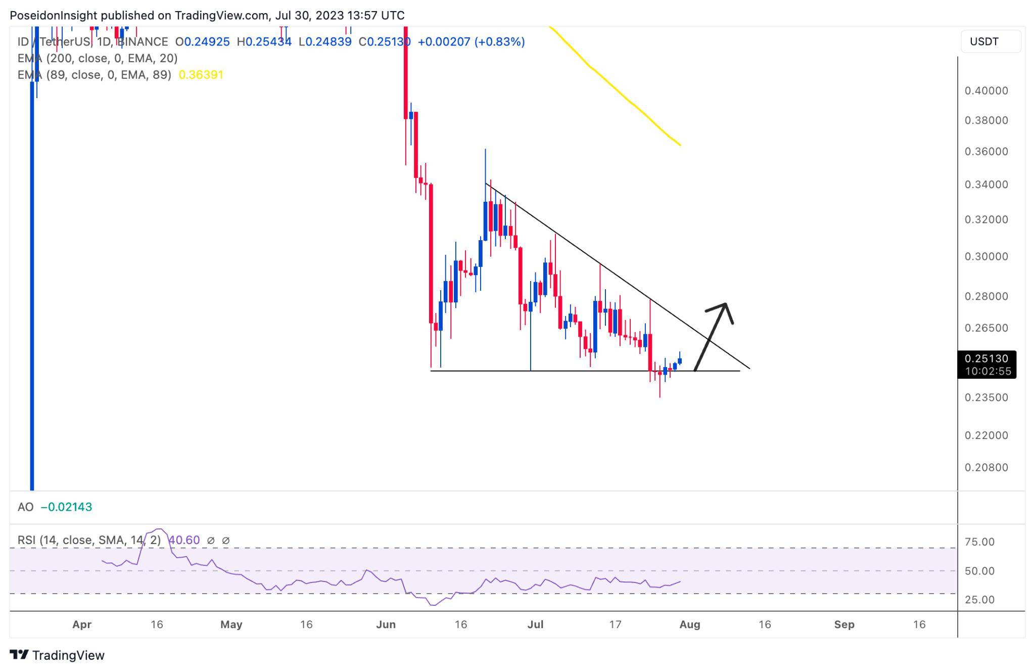 Đồ thị 1D của cặp ID/USDT trên sàn Binance Futures, ảnh chụp màn hình TradingView vào tối ngày 30/07/2023