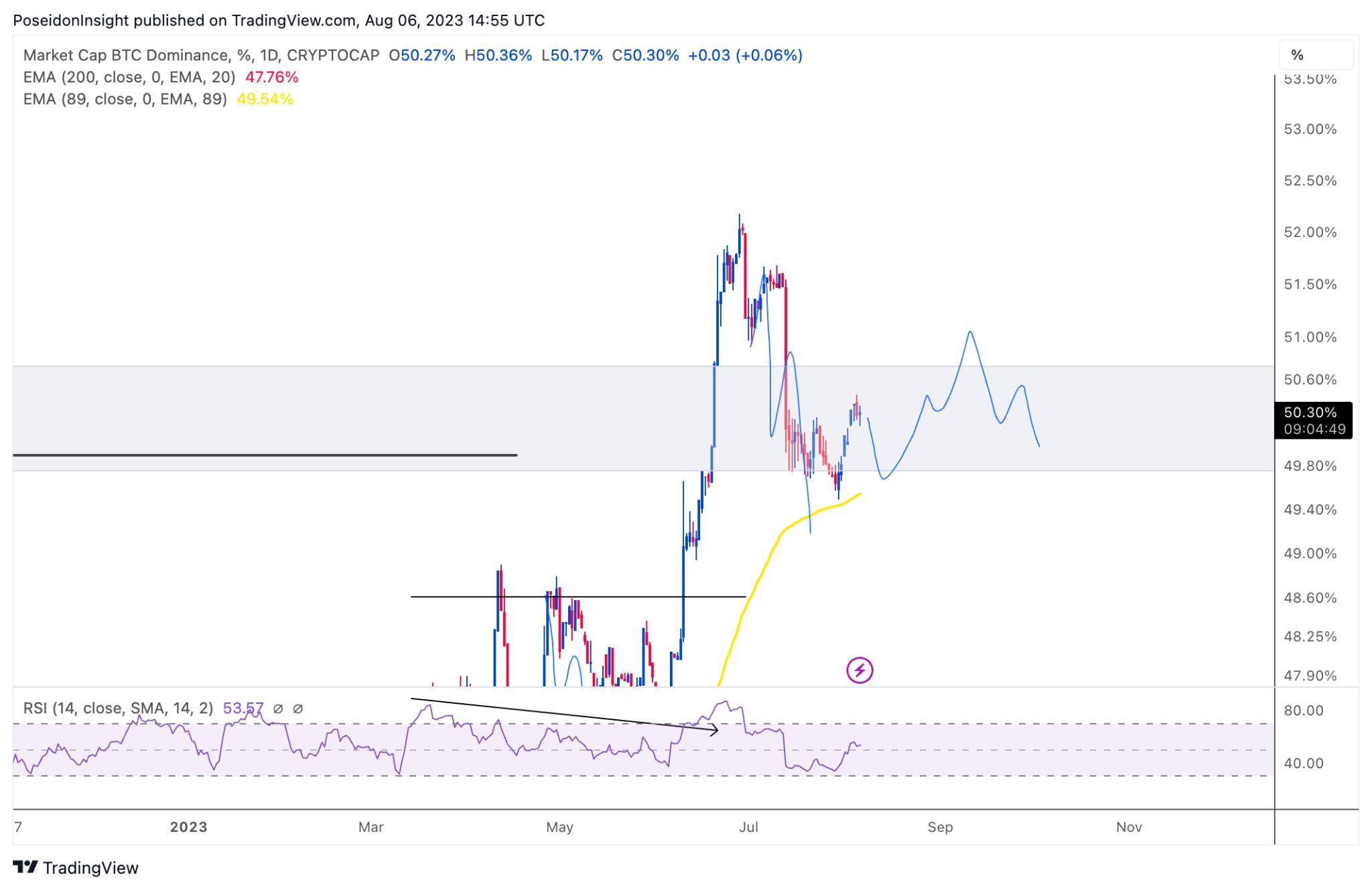Chỉ số Bitcoin Dominance (BTC.D), ảnh chụp màn hình TradingView vào tối ngày 06/08/2023