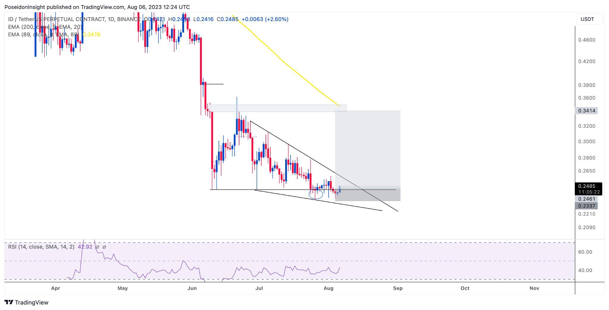 Đồ thị 1D của cặp ID/USDT trên sàn Binance Futures, ảnh chụp màn hình TradingView vào tối ngày 06/08/2023