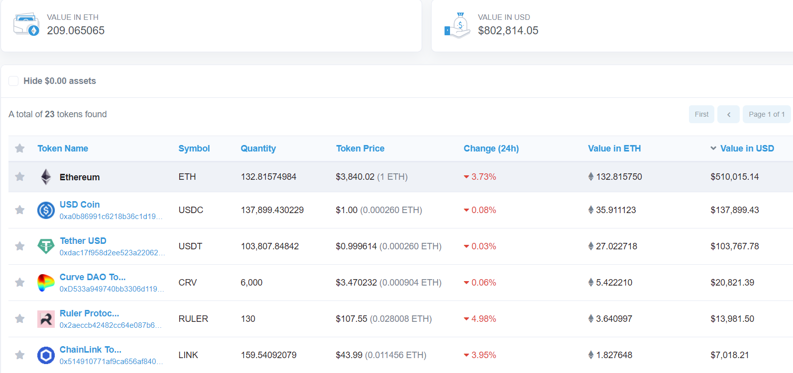 Một loạt các altcoin cũng được gửi đến địa chỉ ví này, bao gồm CRV, RULER, LINK và SWAP.