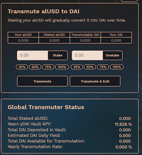 Điều này sẽ giúp anh có thể stake alUSD vào Transmuter và token của họ sẽ được chuyển đổi thành tài sản cơ sở sau khi lợi nhuận chuyển vào.