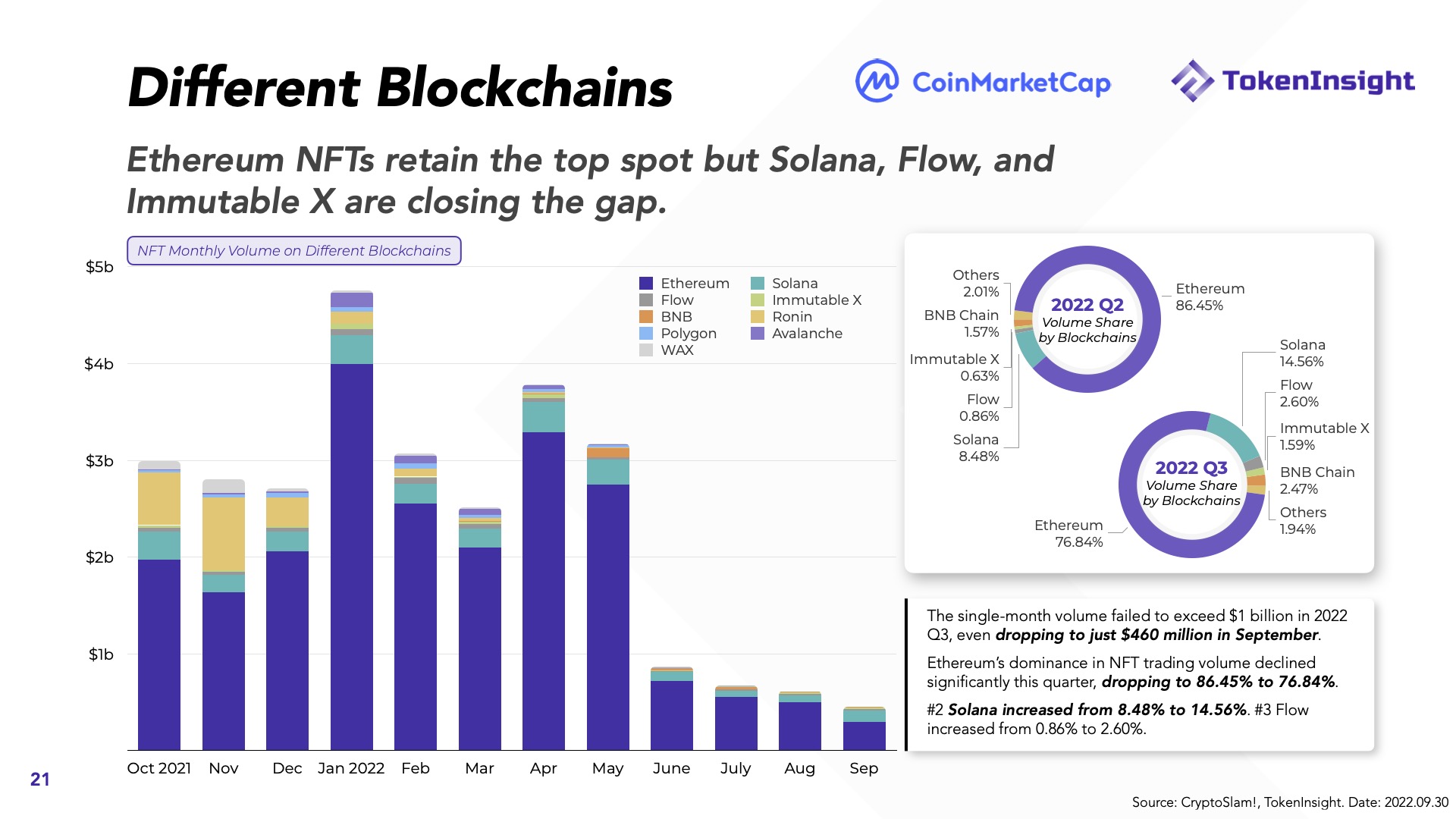 Ethereum NFT vẫn giữ vị trí hàng đầu nhưng Solana, Flow và Immutable X đang thu hẹp khoảng cách.