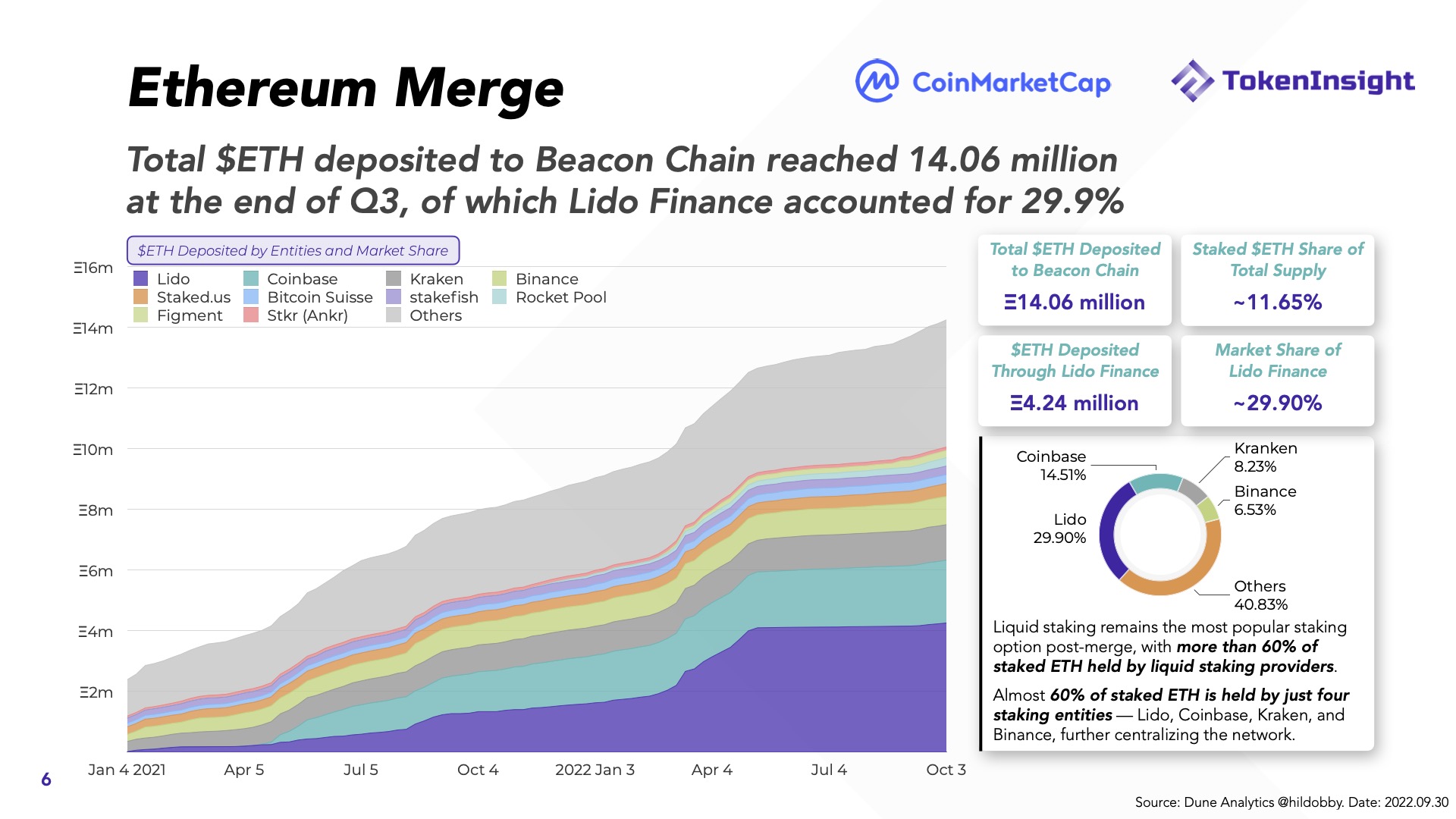 Gần 60% ETH đã staking được nắm giữ bởi chỉ bốn tổ chức – Lido, Coinbase, Kraken và Binance, tiếp tục tập trung hóa mạng lưới.