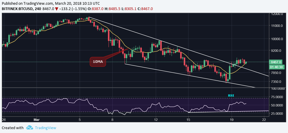 Tuy nhiên, bất chấp việc đạt được kiểu hình phá rào bull flag, Bitcoin suốt 20 giờ qua chỉ dao động trong khoảng giá trị từ $8,200 – $8,700.