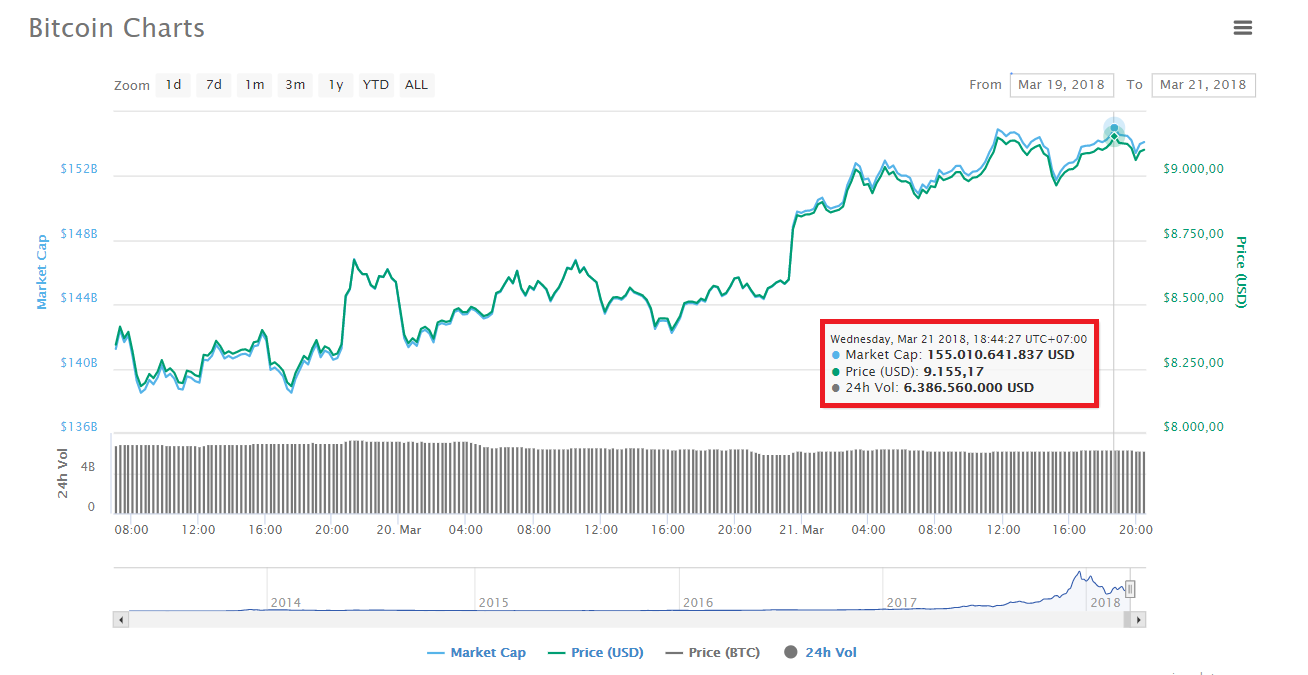 Sau khi chạm đáy ngắn hạn hồi hôm Chủ nhật, giá Bitcoin trong ngày hôm nay (21/03) đã tăng mạnh lên lại $9,155/đồng – mức cao nhất từ ngày 14/03.