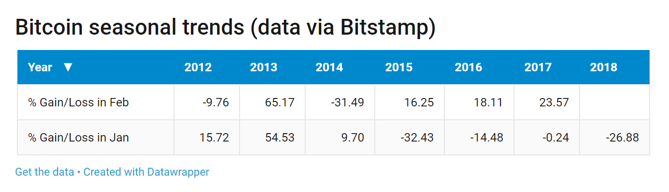 • Tuy nhiên, kể từ 2015 đến nay, một kiểu hình rõ ràng đã được thiết lập: Bitcoin sẽ mất giá vào tháng 1, sau đó sẽ lại tăng trưởng vào tháng 2.