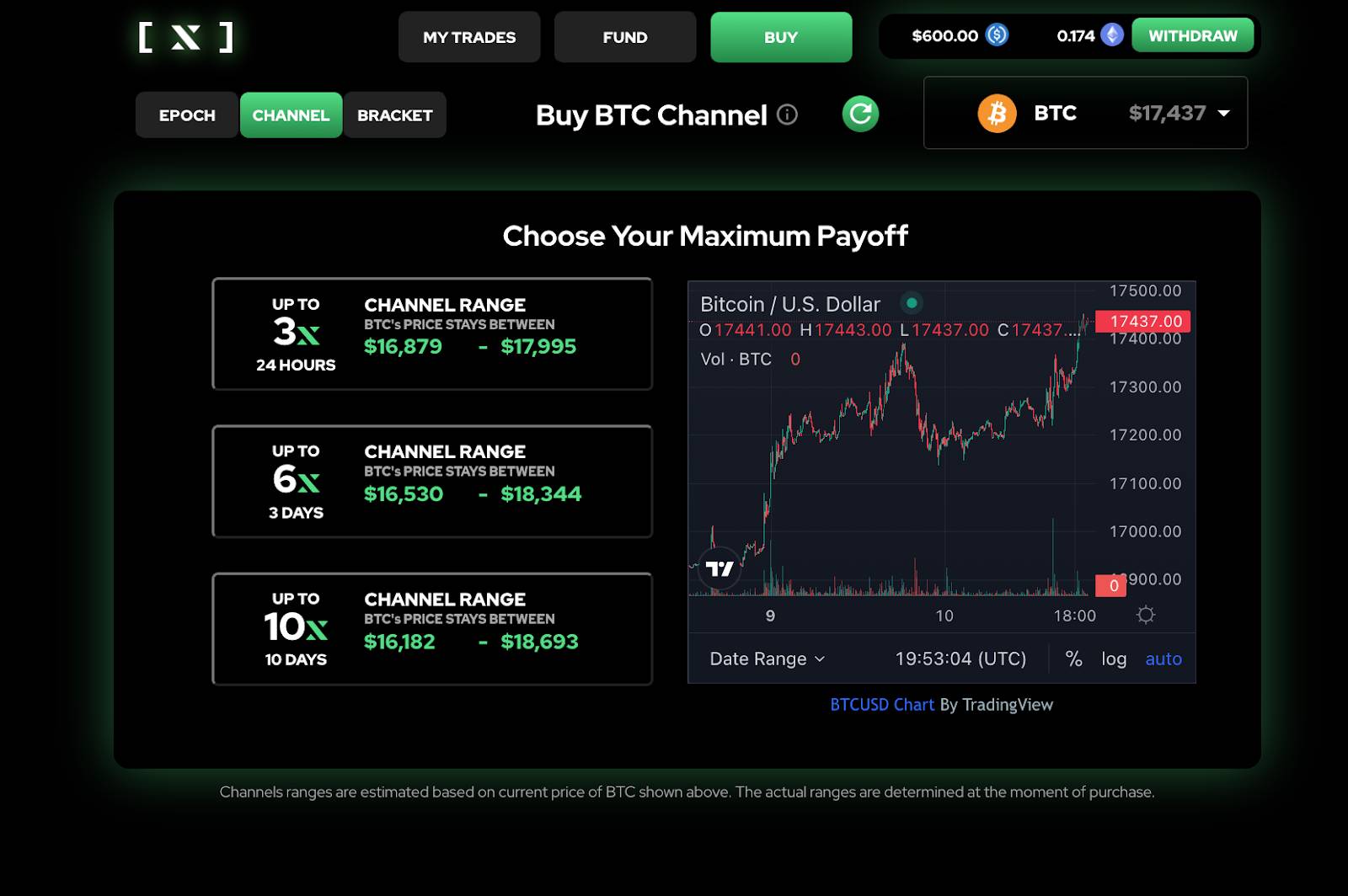 Bracket là một sản phẩm độc đáo cho phép người mua tận dụng biến động giá của một tài sản trong một khoảng giá nhất định. Bằng cách sử dụng Bracket, người mua có thể kiếm lợi nhuận từ việc đòn bẩy mà không cần có tài khoản ký quỹ hoặc các yêu cầu phức tạp khác. Người dùng có thể tham gia một vị thế mua hoặc bán của một loại tài sản, nếu giá của tài sản nằm trong một khoảng giá nhất định trong một thời gian xác định, người dùng sẽ kiếm được lợi nhuận. Nếu giá của tài sản vượt qua một mức giá cố định, vị thế sẽ tự động đóng lại.