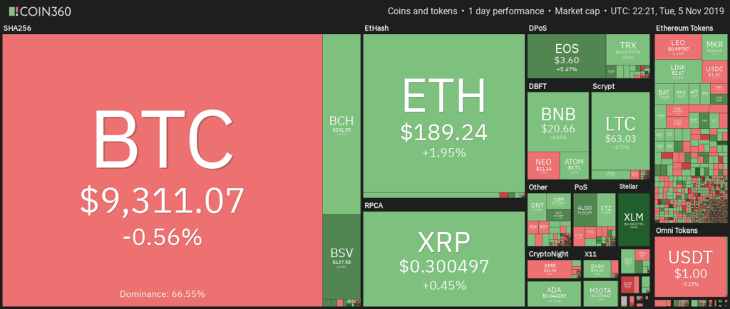 Top 20 đồng coin hàng đầu vừa ghi nhận cả dấu hiệu tăng và giảm, trong đó, Stellar dẫn đầu với mức tăng lớn nhất trong ngày, tiếp sau đó là mức tăng ấn tượng của Bitcoin SV (BSV) với hơn 7% trong ngày.