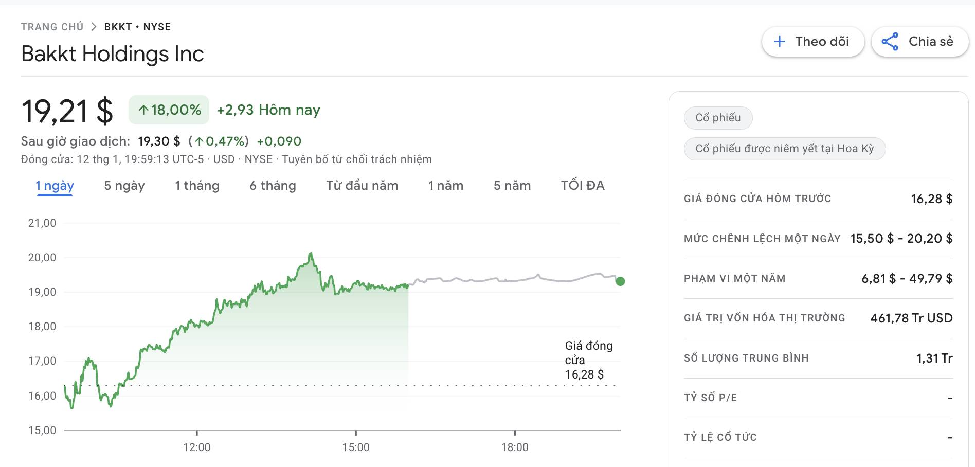 - Ngay sau thông tin này, cổ phiếu BKKT đóng cửa phiên giao dịch với mức giá đóng cửa tại 19,21 USD, ghi nhận mức tăng 18% trong 24 giờ qua.