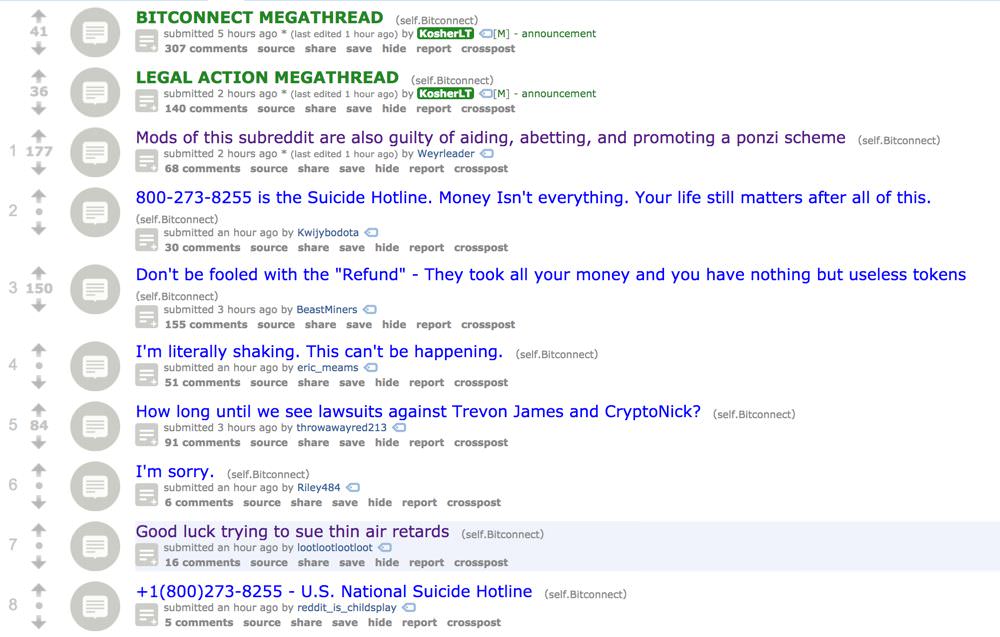 Tweet mới nhất của cô ấy là một bức ảnh chụp màn hình trên trang Reddit Bitconnect, với subreddits đề cập đến một đường dây nói dành riêng cho nạn….tự tử và đề nghị các nhà lập pháp cần phải mạnh tay hơn nữa.