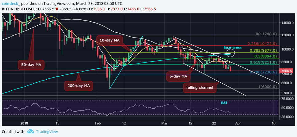 Tuy vậy, Bitcoin đã thất bại trong việc giữ mình ở trên ngưỡng $8,000, tạo điều kiện cho xu hướng mất giá vùng dậy. Tại thời điểm thực hiện bài viết, BTC đã giảm thấp hơn $7,500.