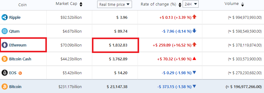 Trên sàn Bithumb, nền tảng giao dịch tiền điện tử có lưu lượng lớn thứ hai thế giới sau Binance, Ethereum là đồng tiền được mua bán trao đổi nhiều thứ 3 với lưu lượng trong 24 giờ đạt 378 triệu đô la Mỹ.