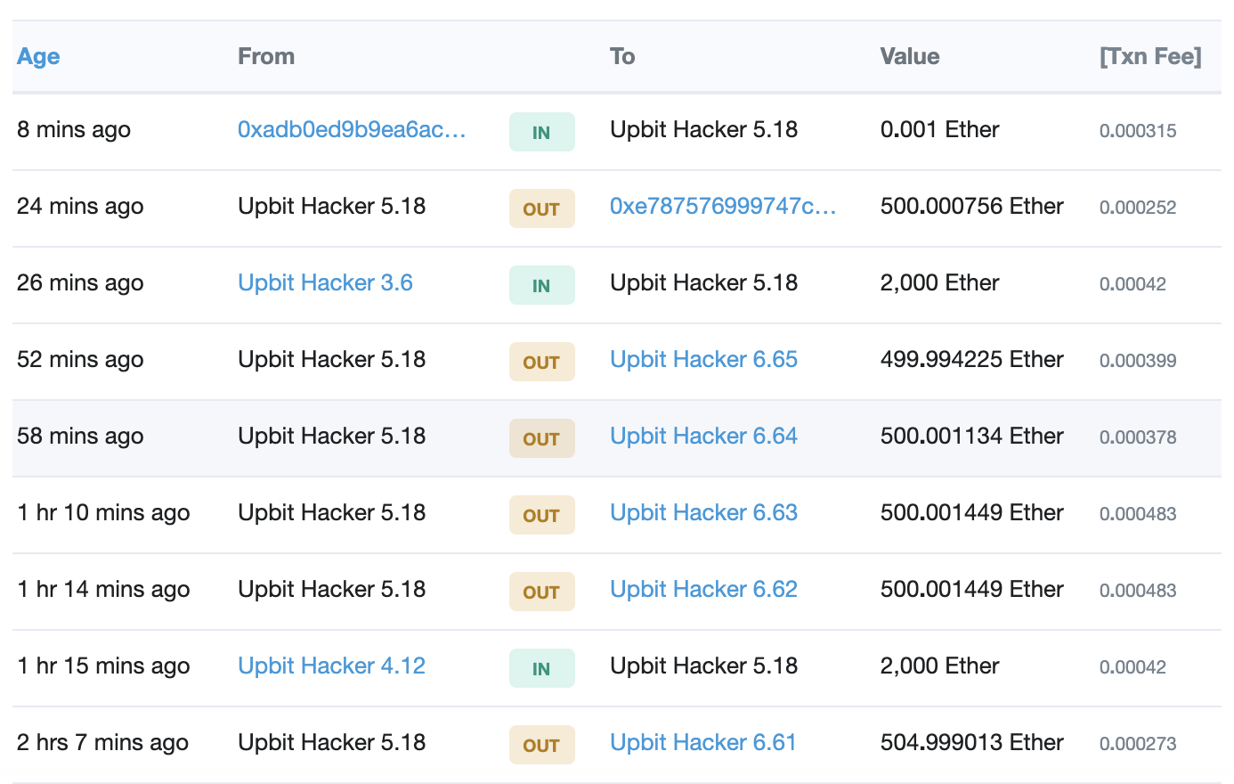 Dưới đây là màn hình chụp lại các giao dịch tẩu tán lượng coin của nhóm hacker: