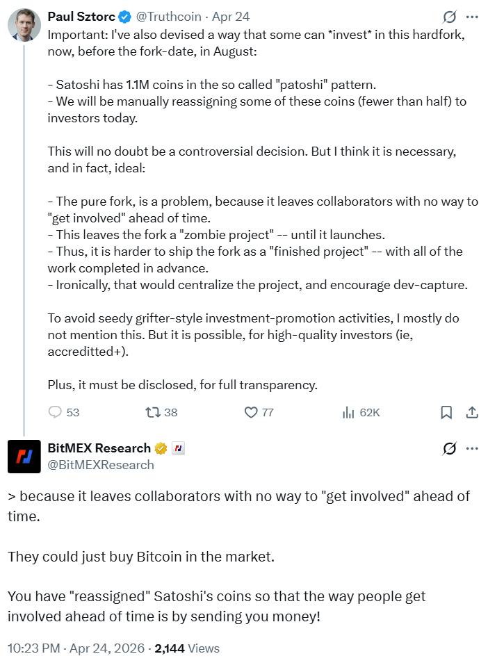 — Paul Sztorc (@Truthcoin) April 24, 2026
