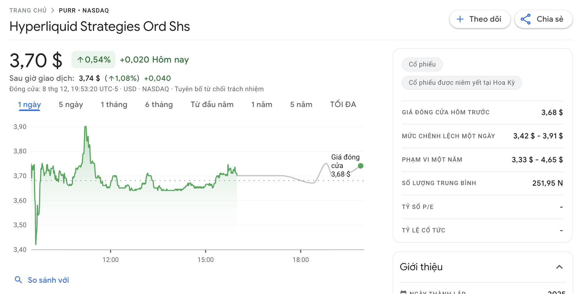 Biến động giá PURR trong 24 giờ qua, ảnh chụp màn hình trên Google Finance lúc 10:30 AM ngày 09/12/2025