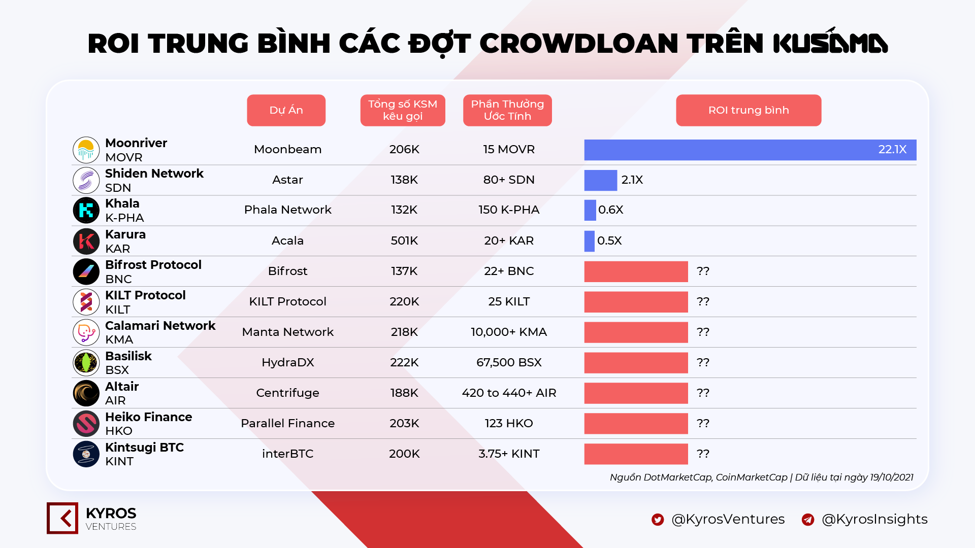 *ROI được tính dựa trên giá trị trung bình của token KSM tại những đợt crowdloan
