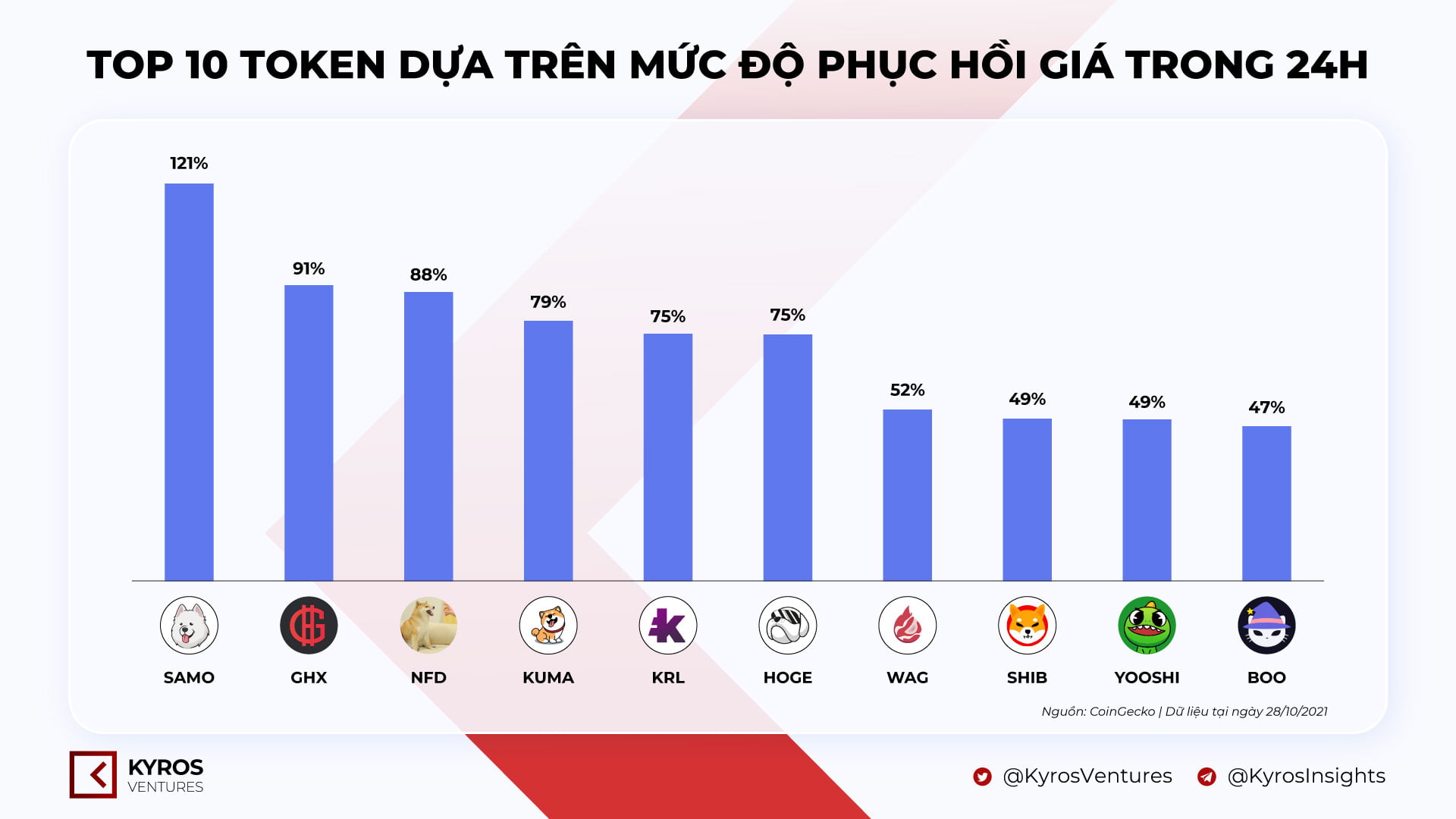 Top 10 token phục hồi giá nhanh nhất trong 24h qua