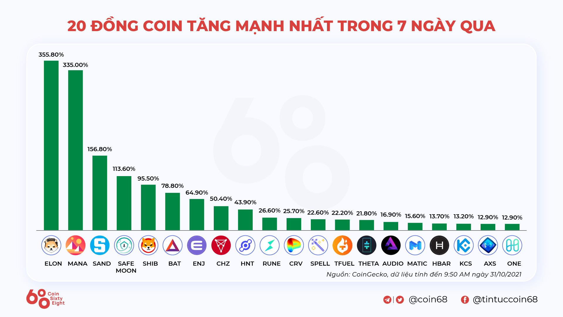20 đồng coin tăng mạnh nhất (xét trong Top 100)