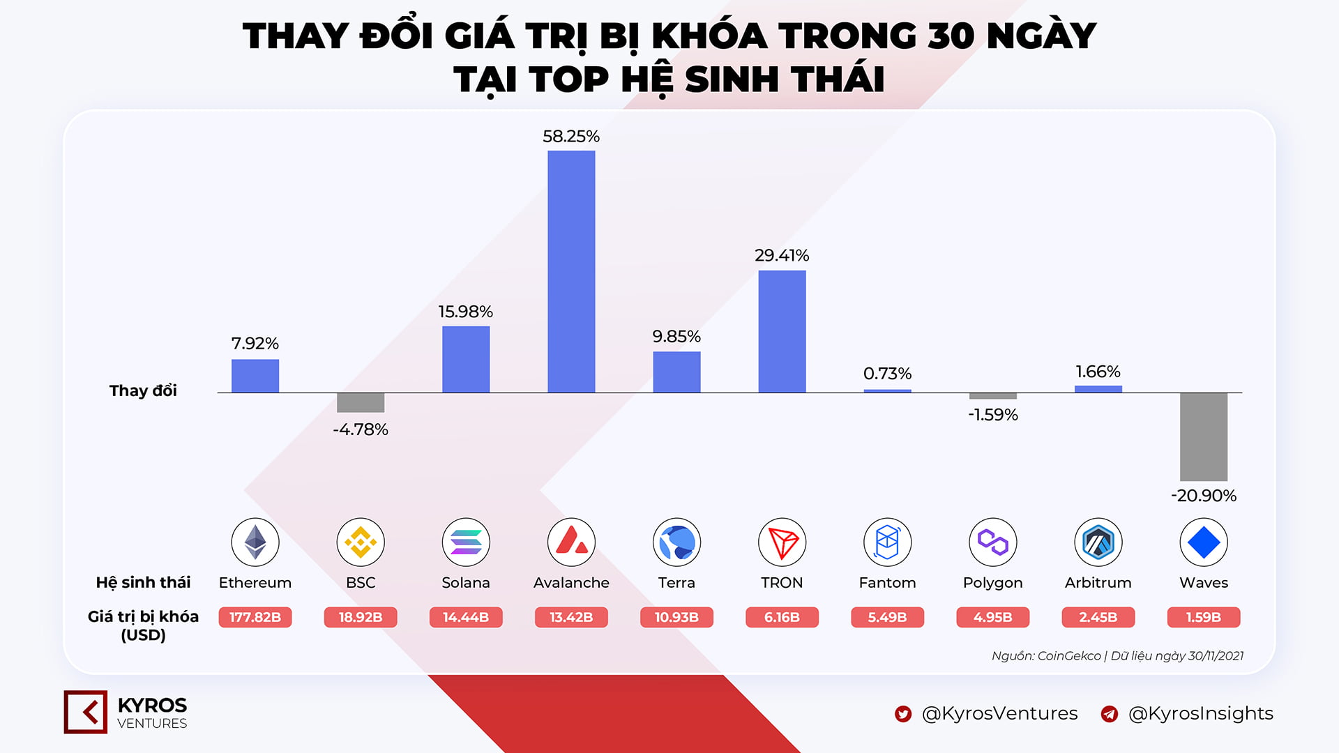 Biến động TVL của các hệ sinh thái nổi bật trong 30 ngày qua