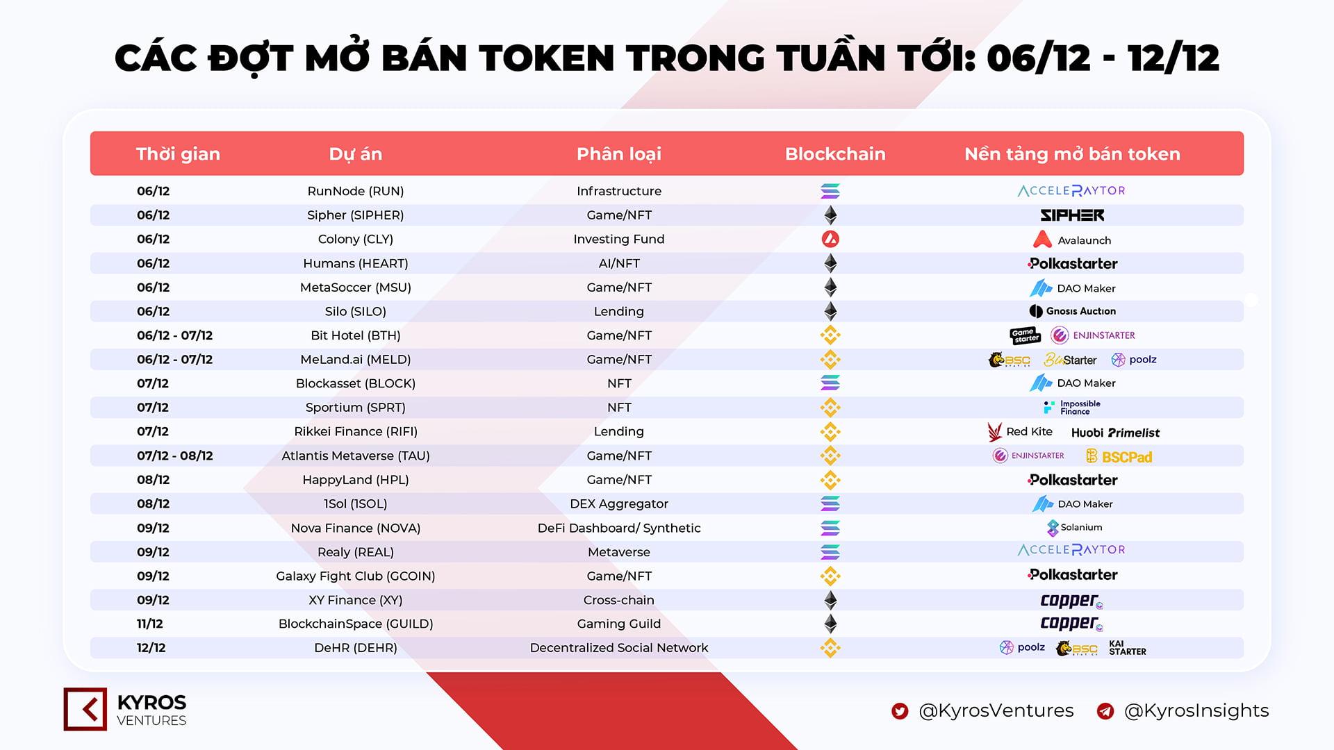 Các đợt mở bán token trong tuần tới (06/12 – 12/12)