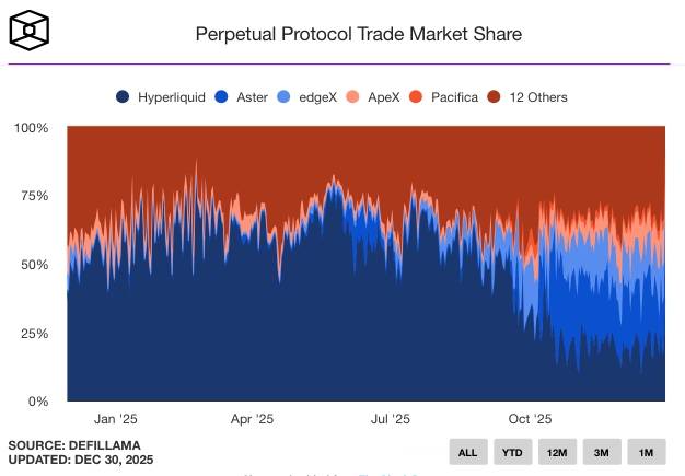 Thống kê khối lượng giao dịch của các sàn Perp DEX. Nguồn: The Block (30/12/2025)