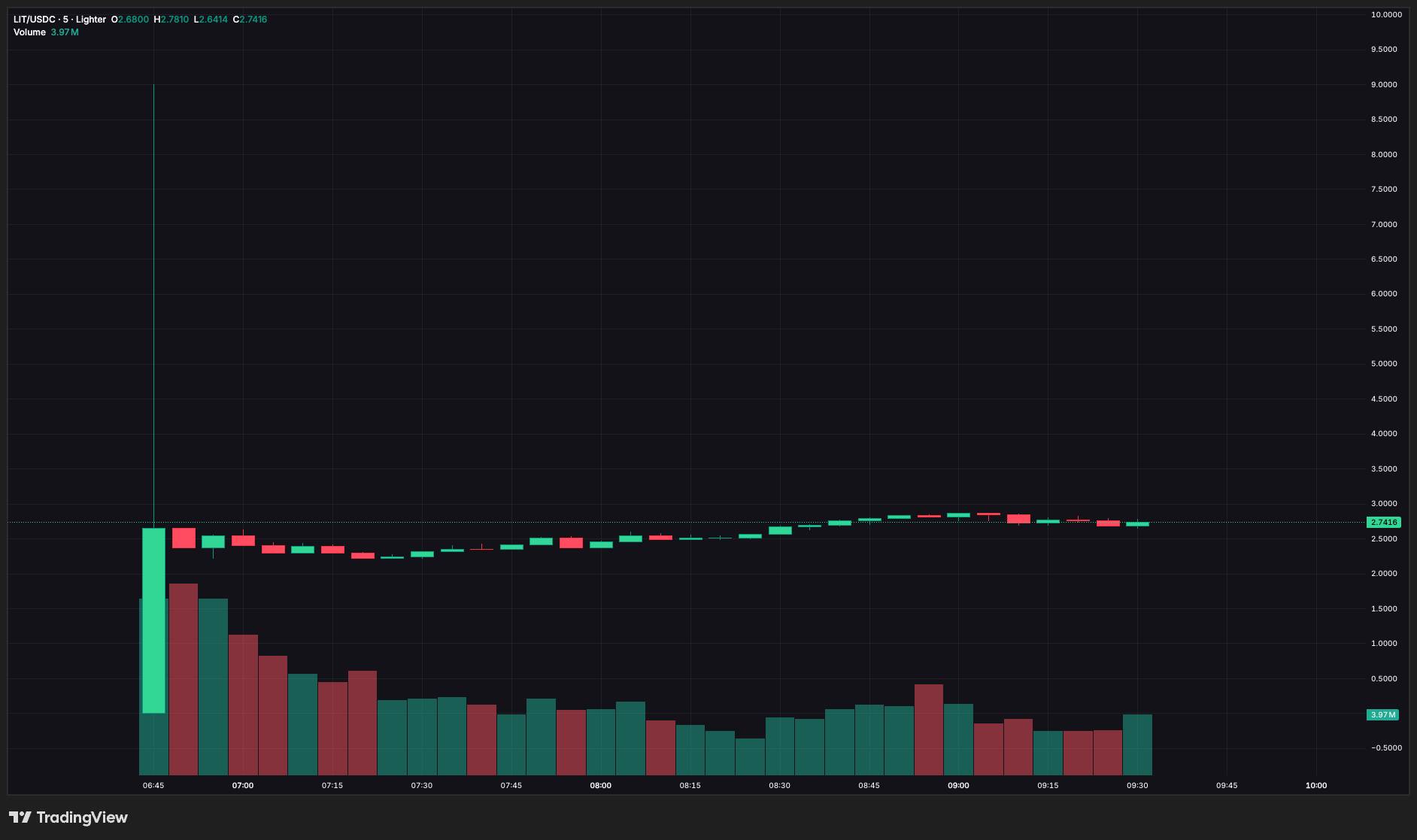 Biến động giá LIT kể từ khi niêm yết giao dịch, ảnh chụp màn hình trên Tradingview vào 04:40 PM ngày 30/12/2025