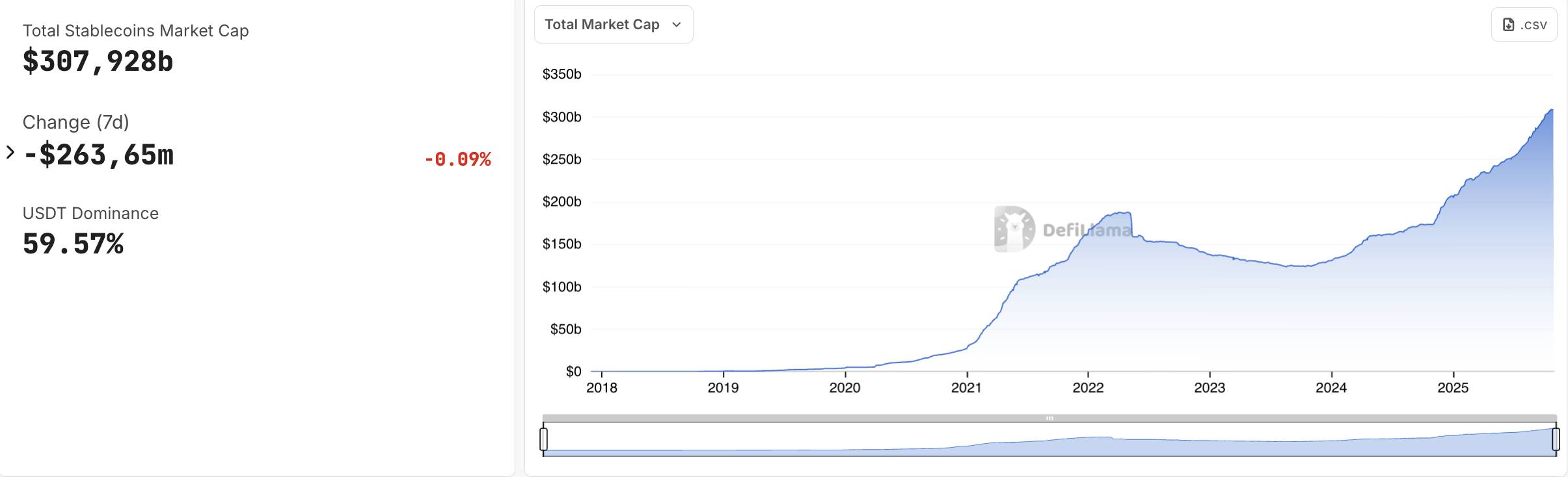- Theo dữ liệu từ DefiLlama, tổng vốn hóa stablecoin toàn cầu đã vượt 307 tỷ USD, tăng khoảng 100 tỷ USD chỉ trong năm 2025, minh chứng cho sự tăng trưởng mạnh mẽ của lĩnh vực này. Ngân hàng Standard Chartered dự đoán vốn hóa stablecoin có thể đạt 750 tỷ USD vào cuối năm 2026.