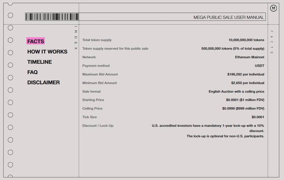 Tổng nguồn cung token: 10 tỷ MEGA, trong đó 500 triệu token (5%) được bán công khai.
