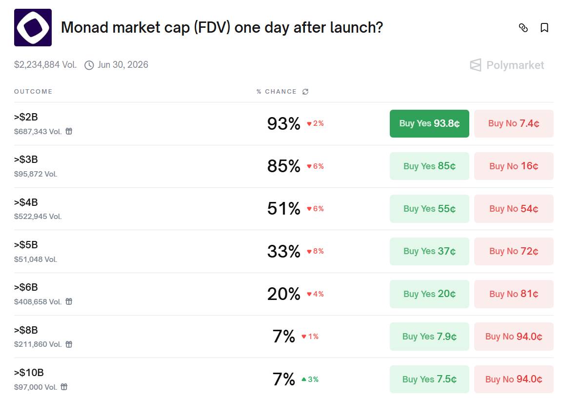 Dự đoán FDV MON sau 1 ngày ra mắt. Nguồn: Polymarket (10/11/2025)