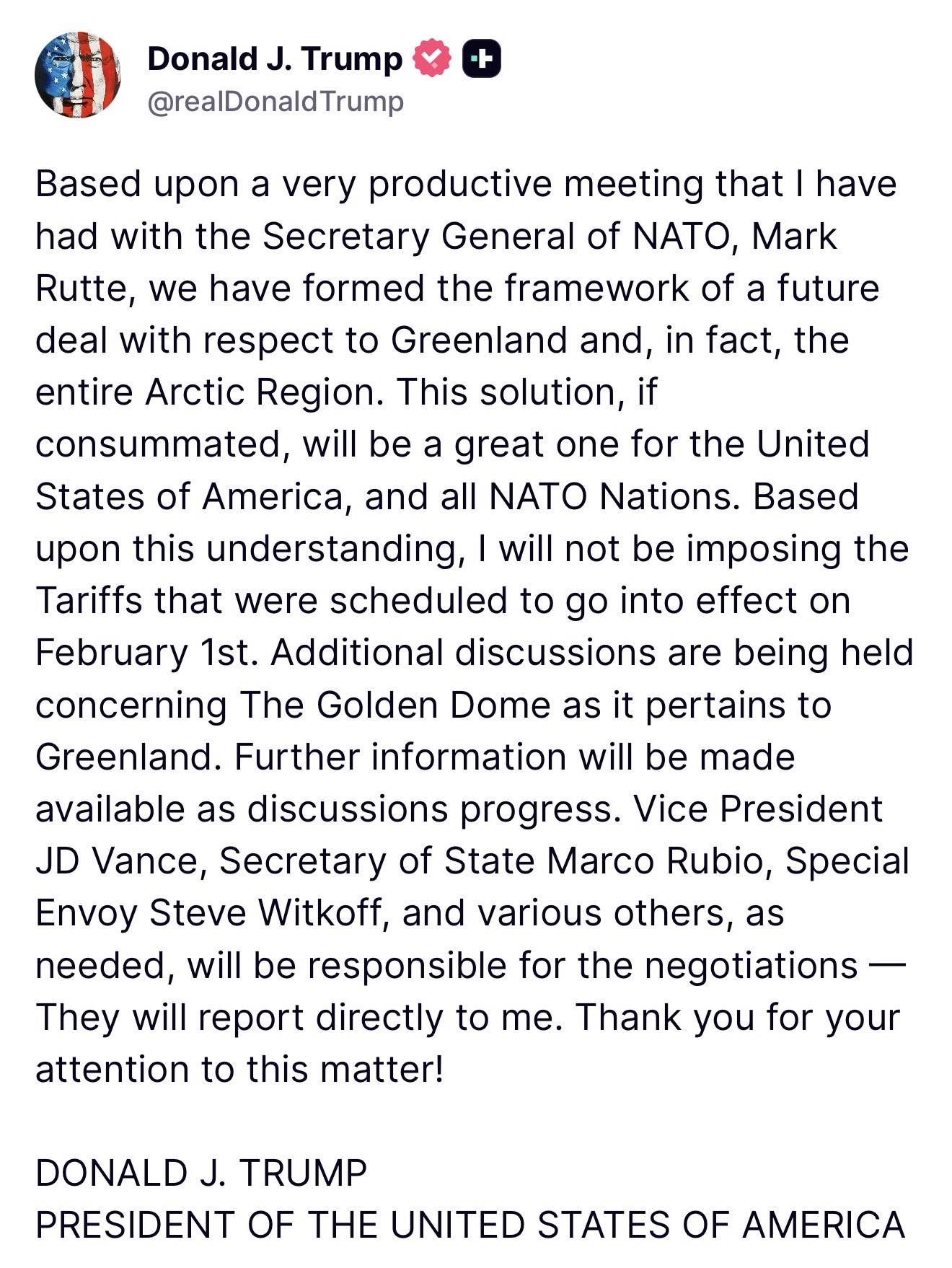 Theo ông Trump, khuôn khổ thỏa thuận mới nhất đáp ứng đầy đủ các yêu cầu của Mỹ về an ninh quốc gia và an ninh quốc tế, đồng thời được thiết kế với hiệu lực “vô thời hạn”. Các nguồn tin cho biết trọng tâm của thỏa thuận không chỉ nằm ở thương mại, mà còn gắn với vai trò chiến lược ngày càng gia tăng của Greenland trong bối cảnh băng tan ở Bắc Cực, mở ra tuyến vận tải mới và khả năng tiếp cận tài nguyên khoáng sản. Việc rút lại đe dọa thuế quan vì thế được xem là một sự điều chỉnh chiến thuật, hơn là thay đổi định hướng chính sách dài hạn.