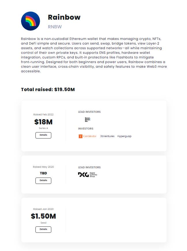 Rainbow huy động được tổng cộng 19,5 triệu USD từ các nhà đầu tư như Seven Seven Six Ventures, Combinator, 35Ventures,...