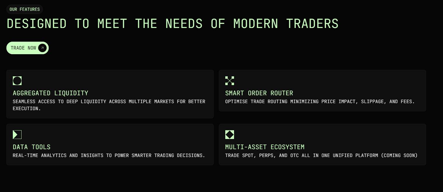 Điểm nổi bật nhất của Ranger Finance xuất phát từ khả năng tổng hợp thanh khoản chuyên sâu (aggregated liquidity) và cơ chế định tuyến lệnh thông minh (smart order routes) được thiết kế để hoạt động xuyên suốt nhiều hệ sinh thái. Nhờ đó, người dùng có thể giao dịch Spot và Perpetual trong một quy trình liền mạch mà không cần tự mình tìm hiểu hay so sánh giữa từng nền tảng khác nhau.