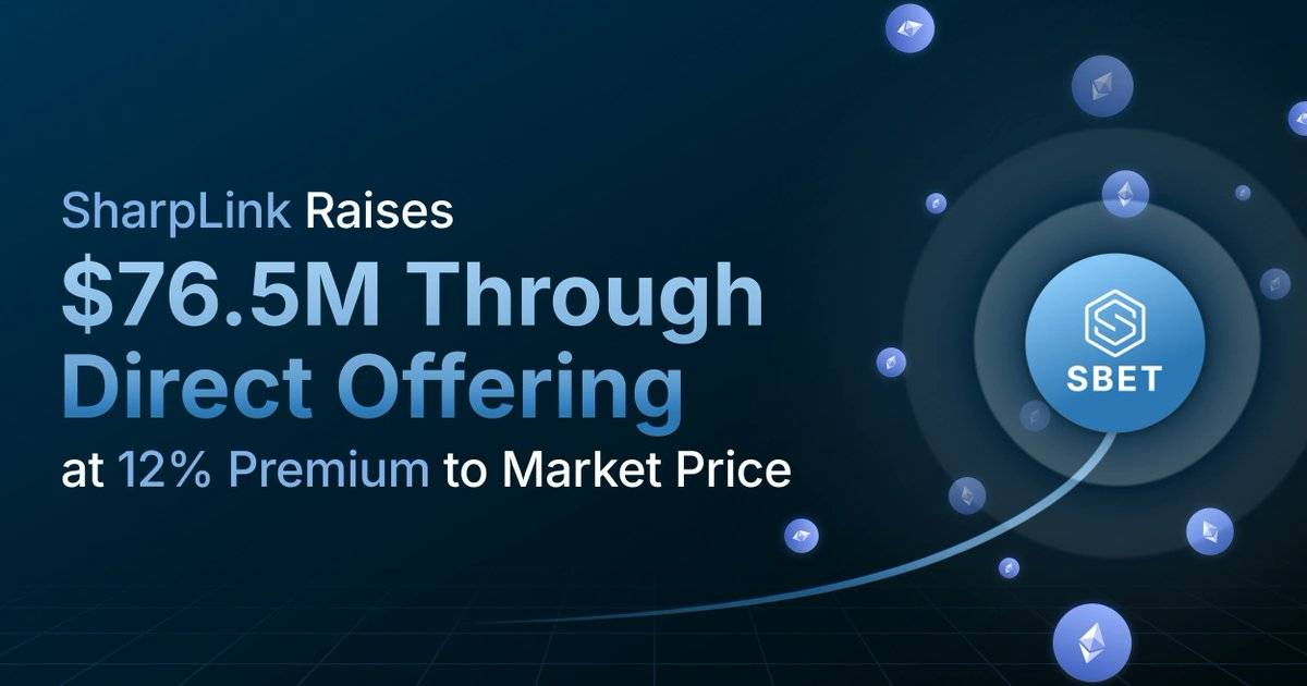 SharpLink huy động 76,5 triệu USD ở mức premium 12% để mở rộng kho bạc Ethereum nhưng giá cổ phiếu vẫn giảm 3,8% sau thông báo.