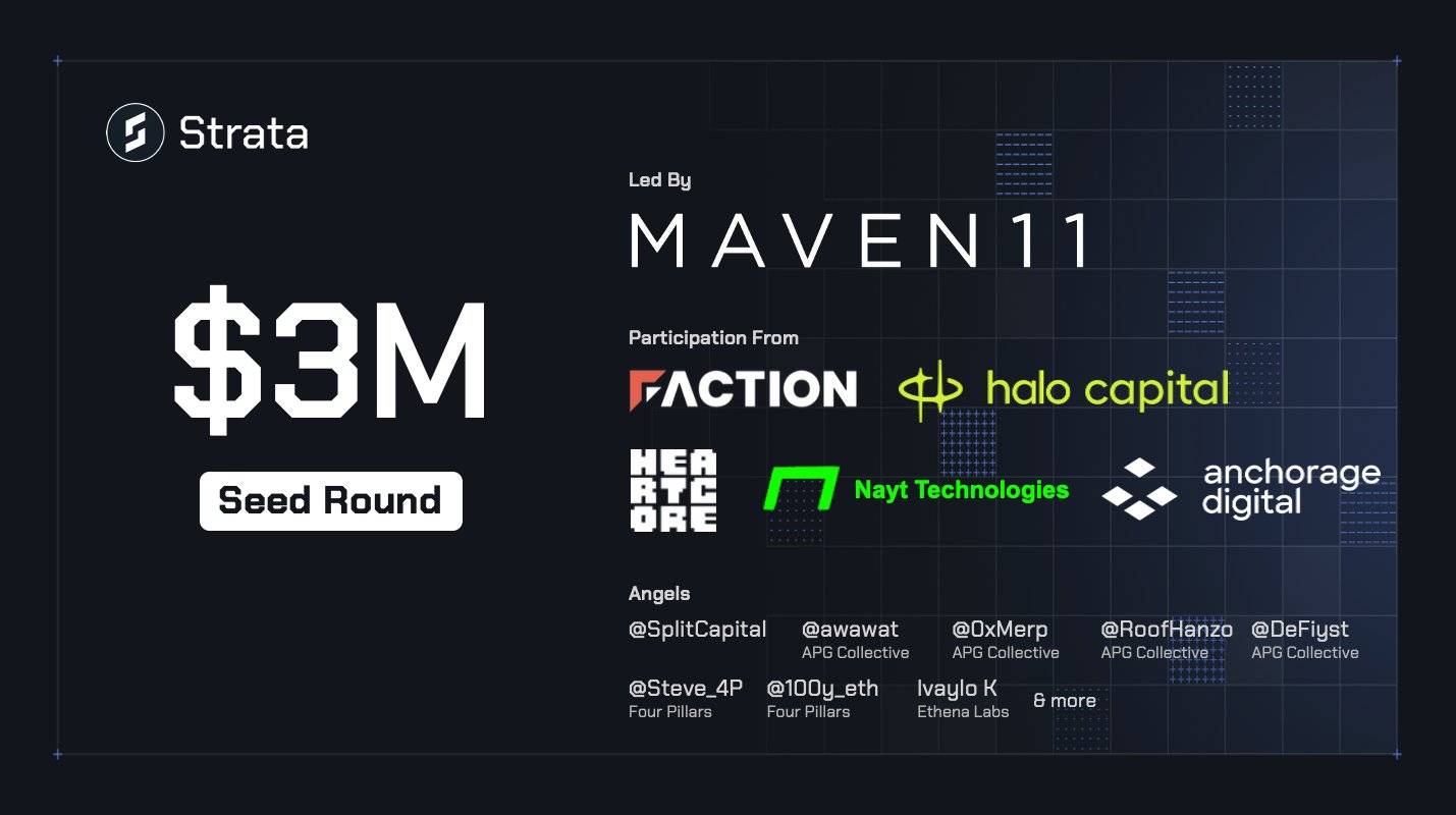 Strata đã huy động 3 triệu USD trong vòng gọi vốn Seed vào tháng 12/2025 theo dữ liệu từ Crypto Fundraising, dù chưa công bố chi tiết danh sách các quỹ đầu tư tham gia. Dự án được xây dựng và vận hành bởi nhóm founding core contributors, những người trực tiếp quản lý giao thức thông qua hệ thống ví đa chữ ký.