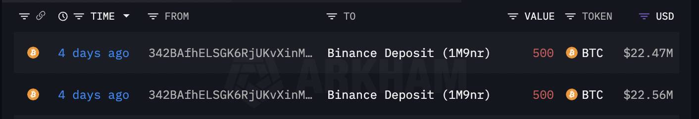 Đến ngày 8/1 vừa qua, chú cá gửi toàn bộ 1.000 BTC (22,47 triệu USD) lên Binance sau khi giá BTC vượt qua mức 45.000 USD.
