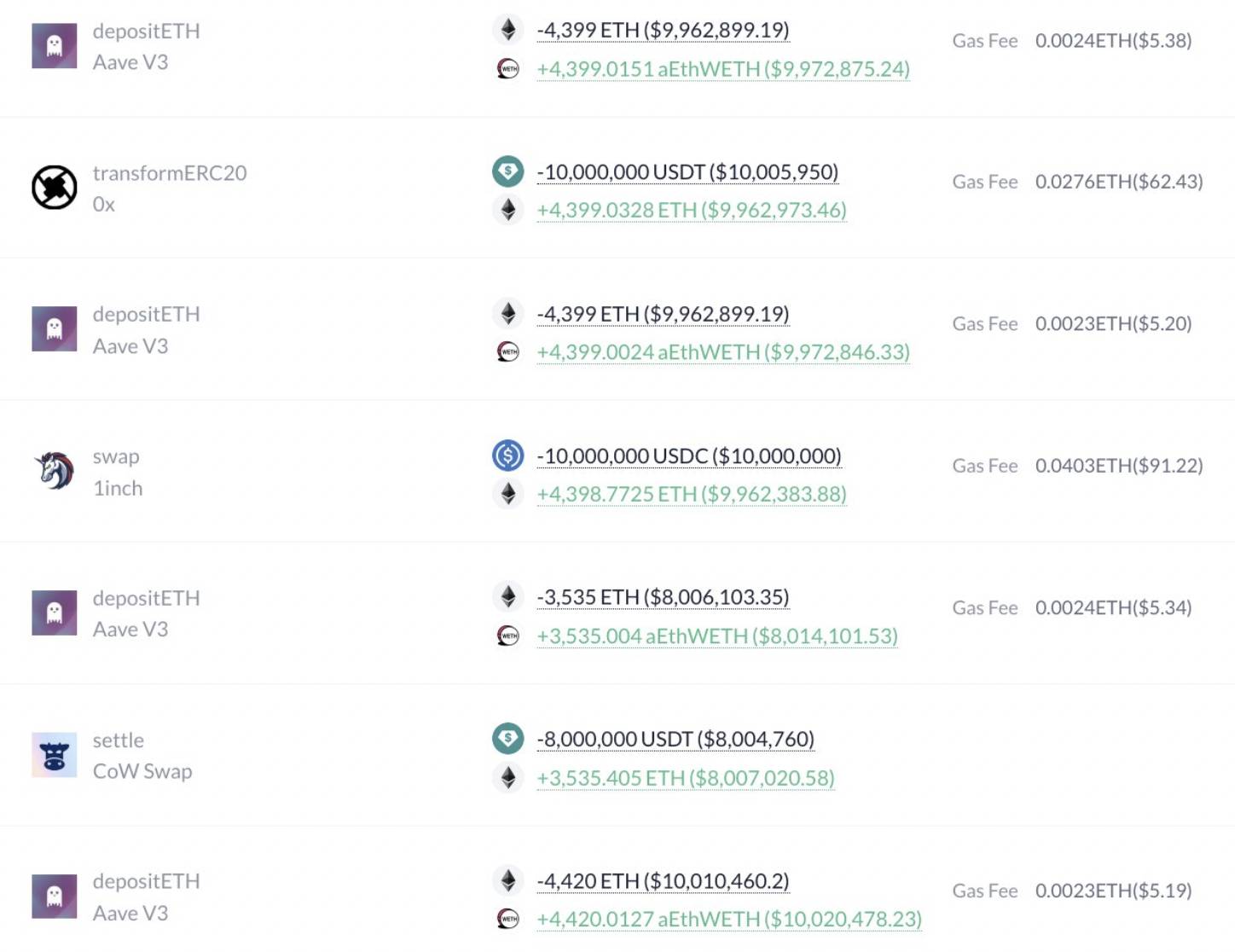Đây là một ví rất bullish vào ETH hơn là BTC. Nó đã vay mượn 241 WBTC (11 triệu USD) từ Aave và swap sang 4.677 ETH (11 triệu USD).