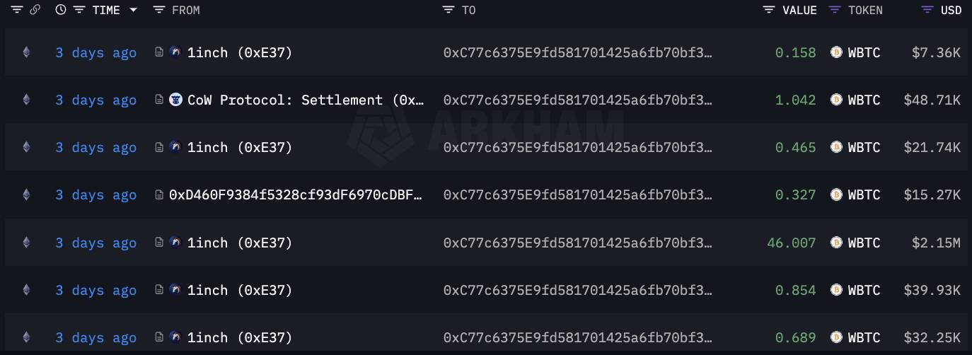 Giao dịch mua WBTC. Nguồn: Arkham Intelligence