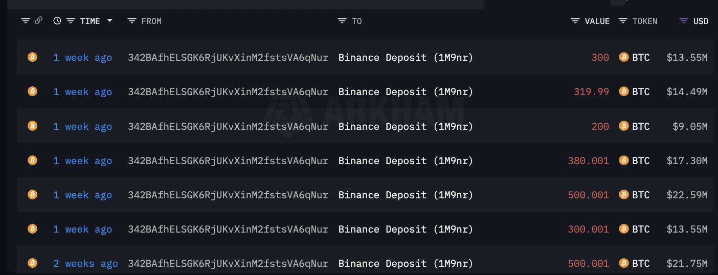 Giao dịch mua BTC từ Binance. Nguồn: Arkham Intelligence