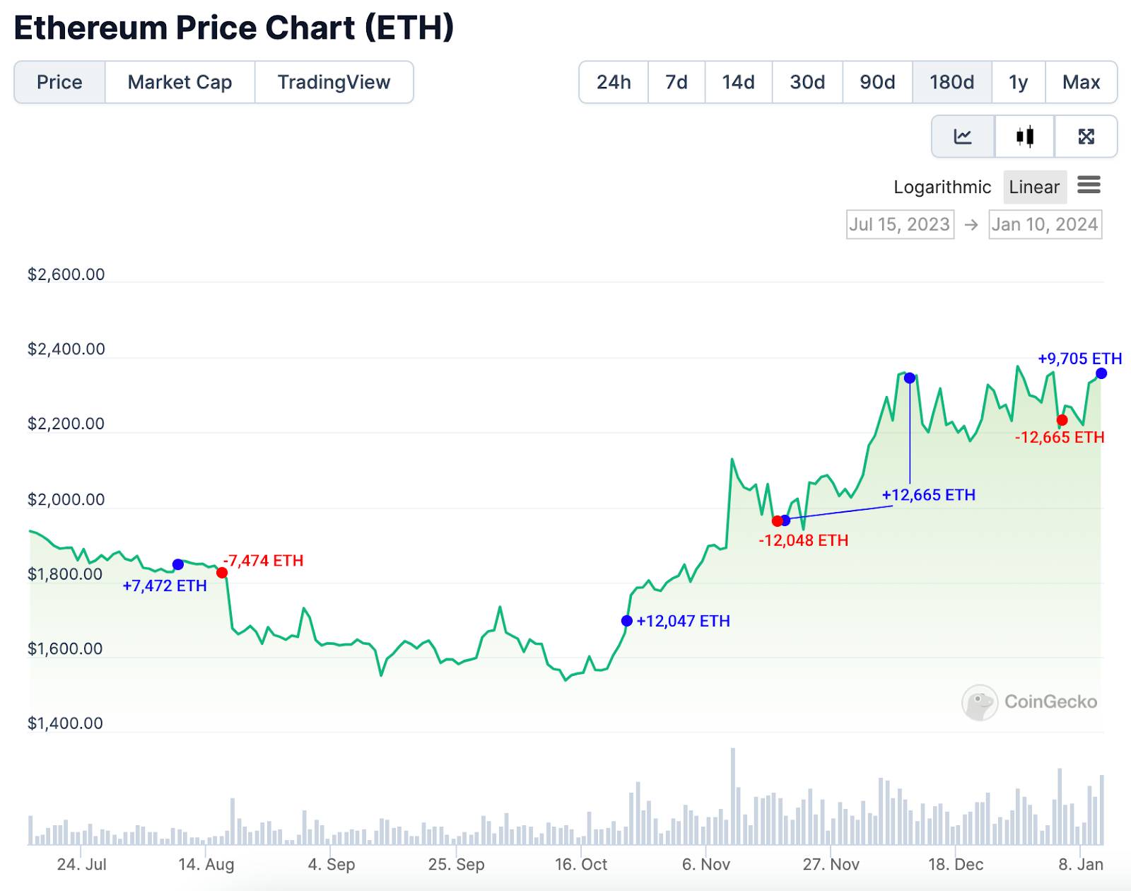 Trong thời gian chờ đợi BTC Spot ETF chính thức được thông qua, nhiều nhà đầu tư chuyển sự chú ý sang ETH, khiến giá Ether vào ngày thứ Tư đã tăng lên đến 12% đạt 2.532 USD. Hành vi này cũng có thể cho thấy sự kì vọng vào việc chắc chắn SEC sẽ phê duyệt Bitcoin Spot ETF và đặt cược vào ETF ETH sẽ được SEC chấp thuận vào thời gian tới.