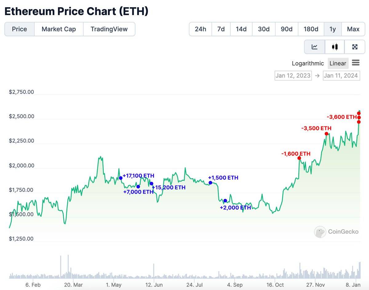 Địa chỉ ví 0xAA1 đã mua thêm 8.179 ETH (21,41 triệu USD) từ Binance và tính từ tháng 9 năm 2023, ví đã chi ra hơn 100 triệu USD để mua ETH.