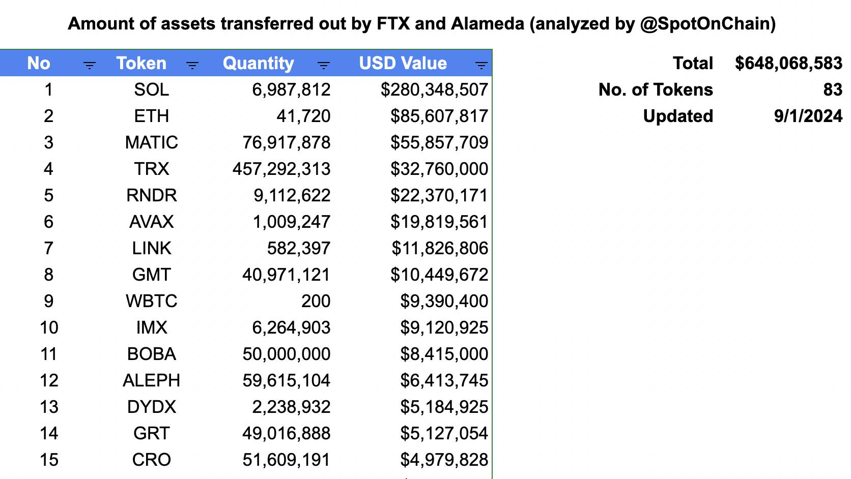 Thống kê token đã thanh lý của FTX. Nguồn: SpotOnChain (09/01/2024)