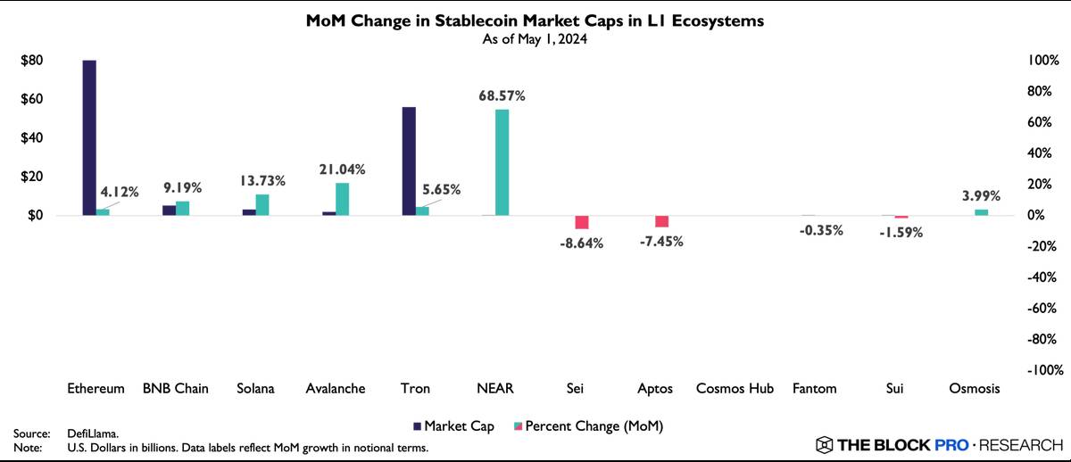 Hầu hết vốn thị trường của stablecoin Layer 1 lớn đã tăng, dẫn đầu bởi Ethereum và Tron, cho thấy dòng tiền đổ vào vẫn tiếp tục dù tình hình thị trường không khả quan.