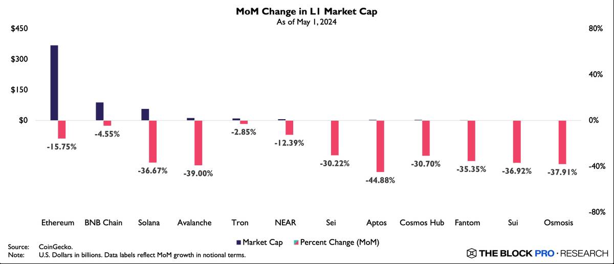 Biến động vốn hoá thị trường trên các Layer 1