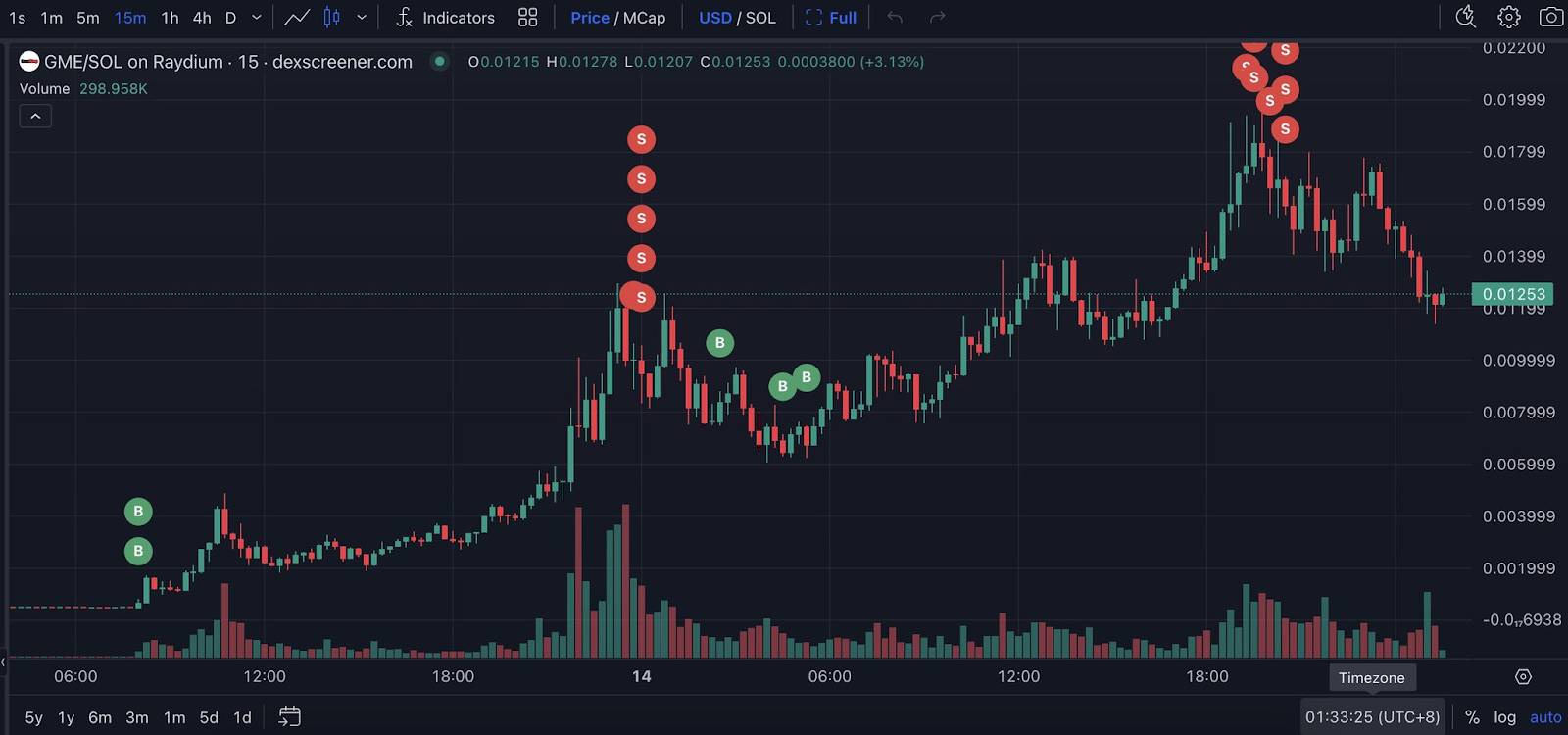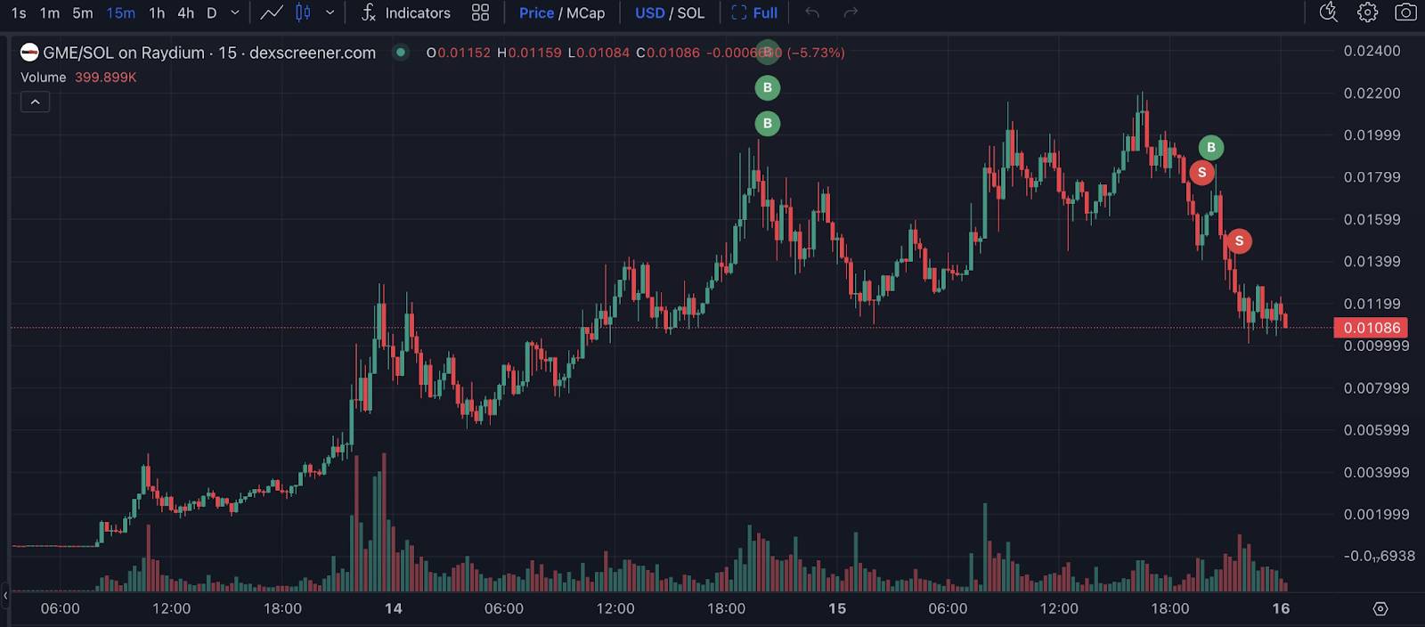 Sau khi giá tăng, ví bán 6,12 triệu GME và thu lại 400 SOL (58.000 USD), trong đó 200 SOL là vốn và 200 SOL là lợi nhuận thực tế.