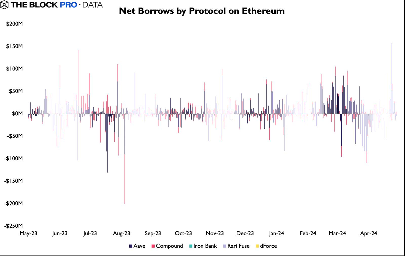 Mảng Lending cũng nóng lên khi Aave ghi nhận số tiền cho vay net là 158,65 triệu USD vào ngày 7/5. Đây là con số cao nhất trong một năm. Số lượng người vay duy nhất trên Aave hiện đã vượt quá con số 200 mỗi ngày. Khối lượng giao dịch trên DEX ở Ethereum thấp hơn do sự cạnh tranh từ Solana và Base, trong khi JustLend trên Tron vượt qua Compound về TVL.