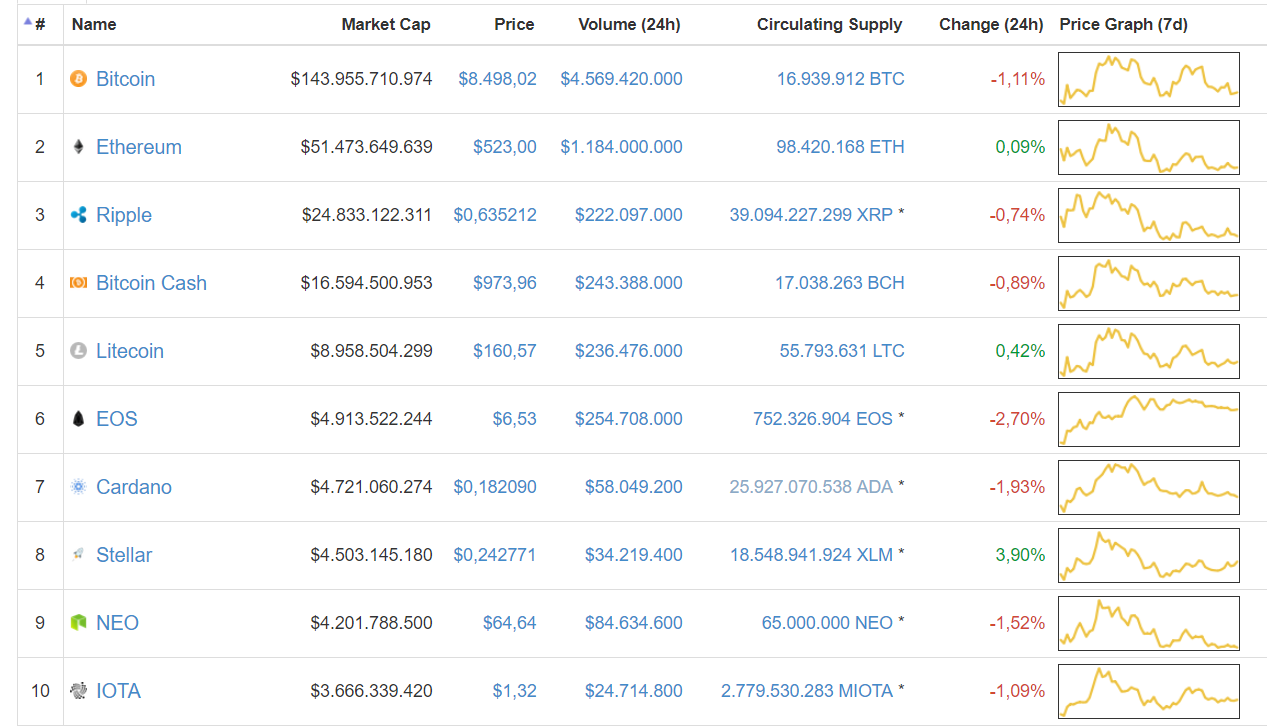 Kể từ ngày 25/03, hai đồng tiền thuật toán số 1 và số 2 thế giới là Bitcoin và Ethereum gần như chẳng ghi nhận mức tăng lẫn giảm đáng kể nào. Giá BTC trong 24 giờ qua chỉ có một lần giảm nhẹ từ $8,580 về $8,490, tương đương hơn 1% giá trị. Lưu lượng giao dịch suốt 1 ngày qua của Bitcoin cũng chỉ đạt 4,5 tỉ USD, tuy nhiên lưu lượng của Ethereum còn thấp con số này đến 3 lần.