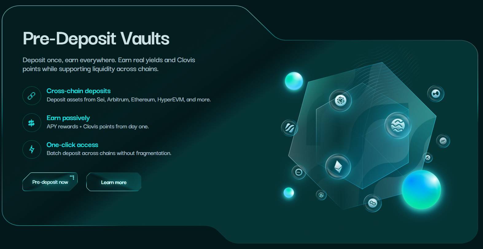 - Clovis: Clovis đóng vai trò như một lớp môi giới tài chính (prime brokerage layer), giúp hợp nhất thanh khoản từ nhiều blockchain khác nhau. Thông qua Clovis, một nguồn vốn duy nhất có thể phục vụ đồng thời các nhu cầu vay, swap và bridge trên nhiều mạng lưới.